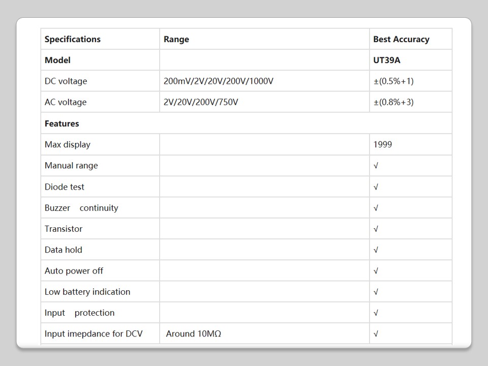 UT39A MODERN DIGITAL MULTIMETER