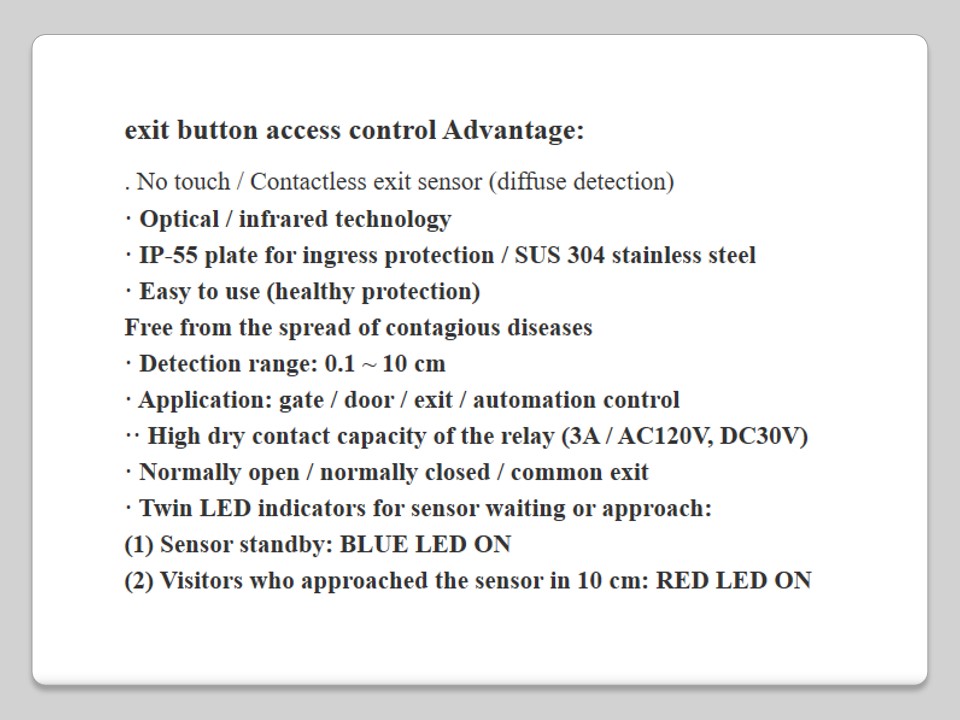 INFRARED SENSOR REID TOCH BUTTON WITHOUT TOUCH